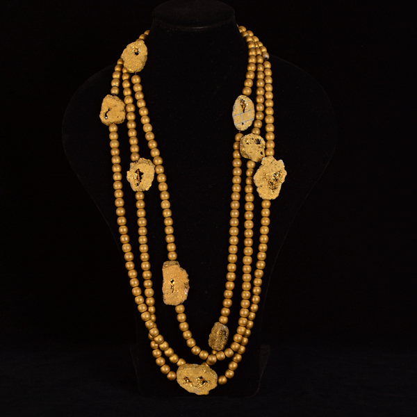 Collar de bolas de hematites de tamaño 10 mm con 11 ágatas de tamaños de 25 a 46 mm.