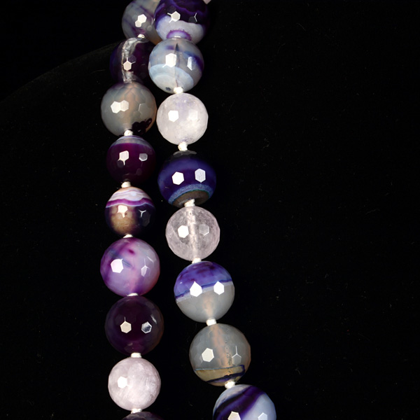 Collar de bolas facetadas de ágatas de tamaño de 13 a 16 mm en distintas tonalidades de violetas.