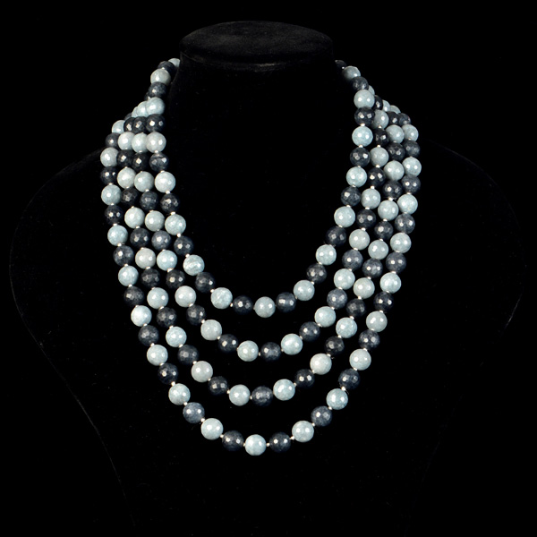 Collar de bolas facetadas de ágatas de tamaño 12 mm en distintas tonalidades de gris plomo.