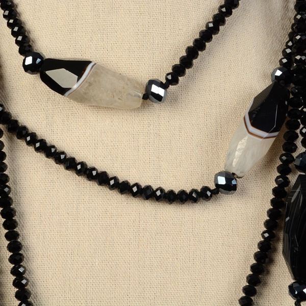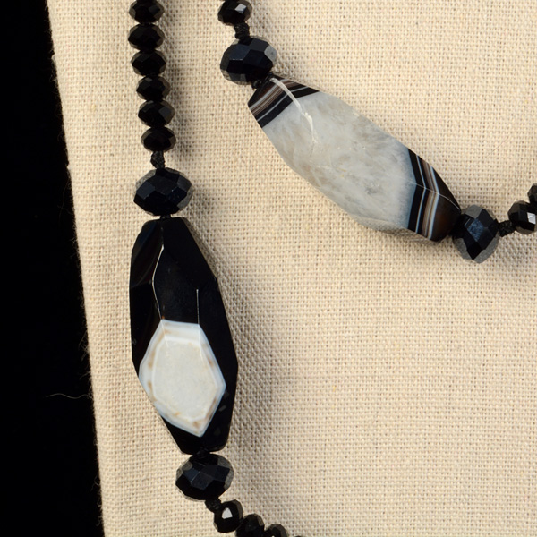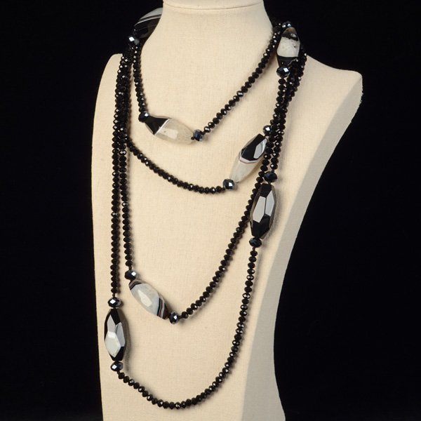 Collar de cristal de bolas chafadas facetadas y 9 ágatas de tamaño 41 mm x 15 mm en tonalidades negro, gris , marrón y blanco