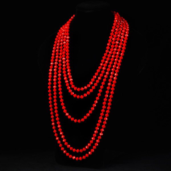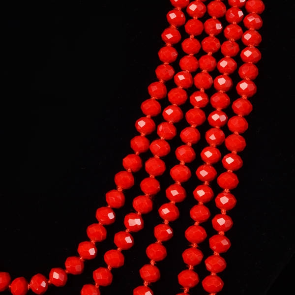 Collar de cristal rojo con bolas chafadas facetadas de tamaño 6 mm.