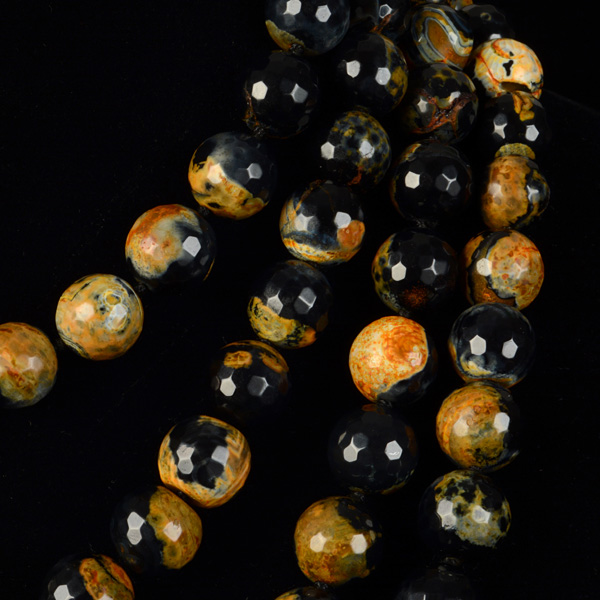 Collar de bolas facetadas de ágatas  de tamaño 13 mm en distintas tonalidades de ocres y negro